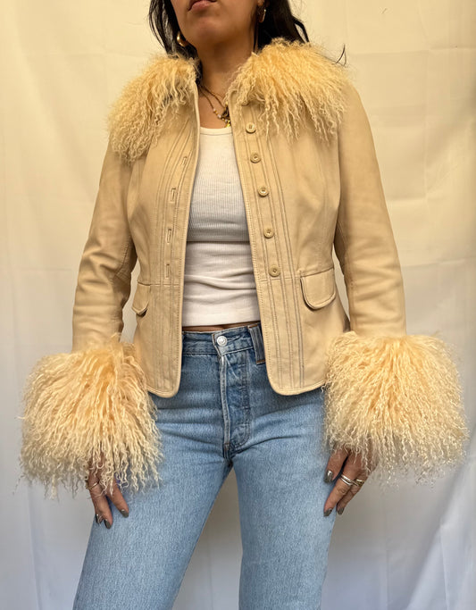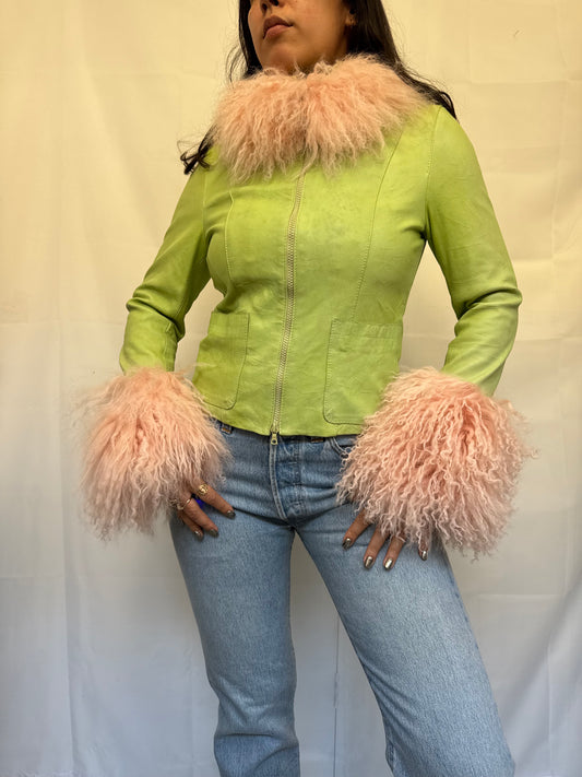 Burgundy Mongolian Wool Bowler Bag with Zebra Print Leather