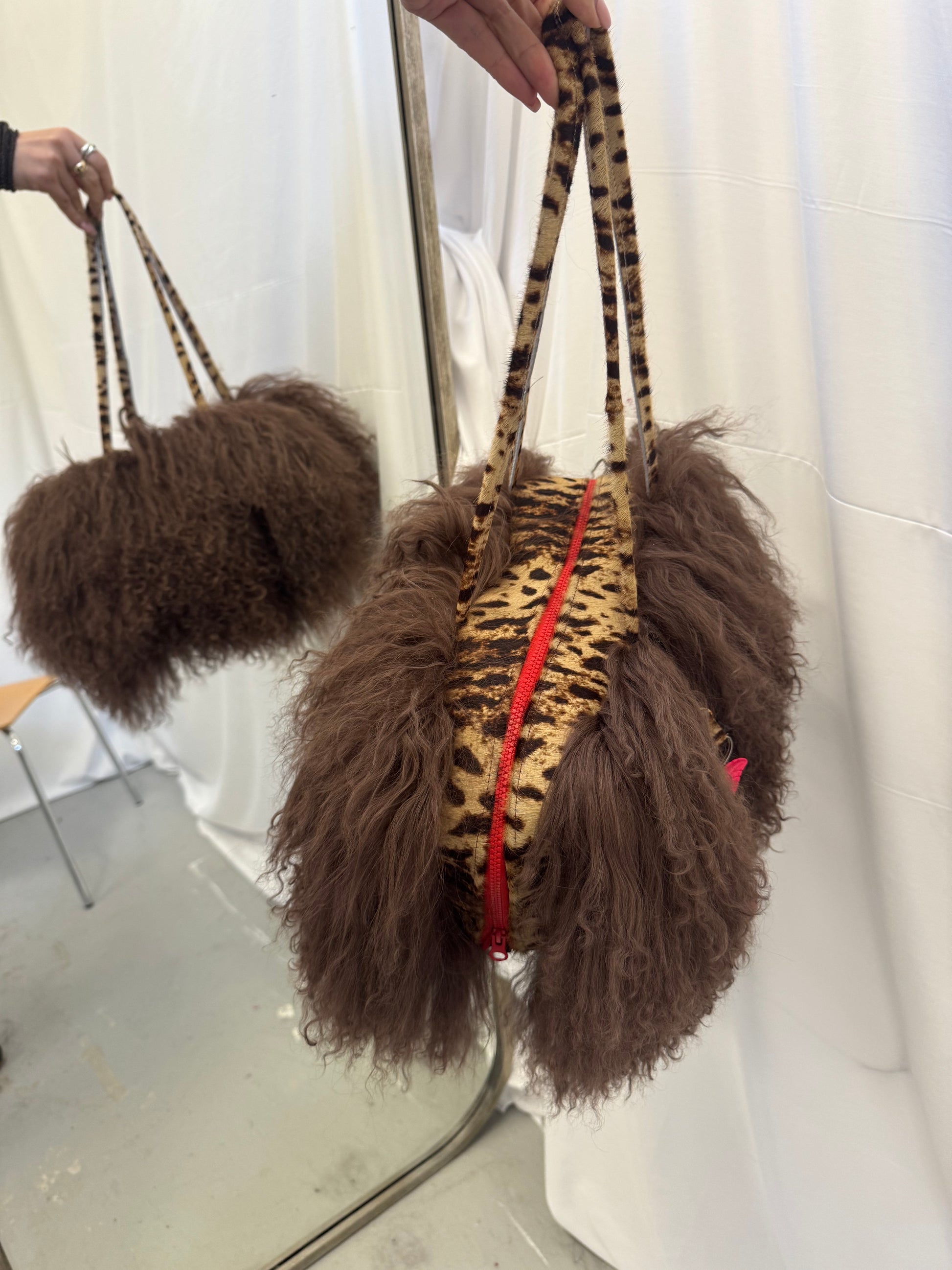A new accessory we developed for party season! Our take on the classic bowler bag silhouette, reimagined with a signature Senja twist. Crafted from plush brown Mongolian wool and contrasted with statement leopard print leather panels. Designed to be treasured, this is a truly unique 1/1 piece that no one else will own.