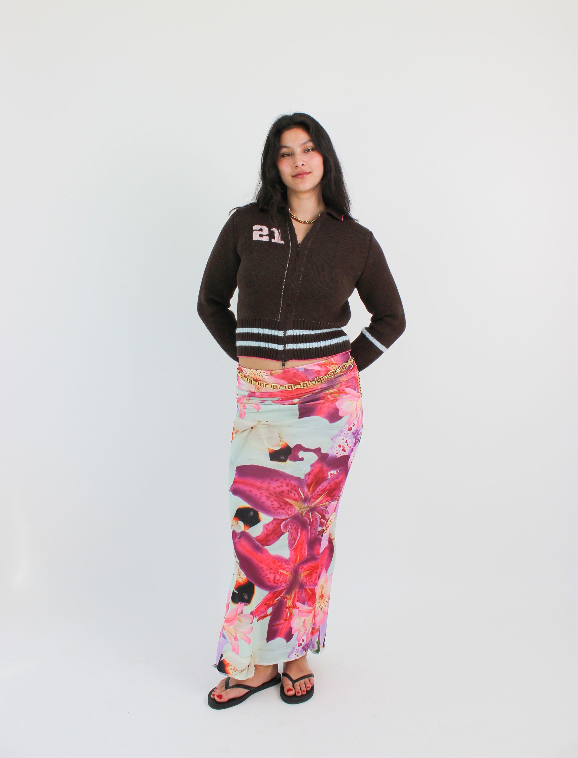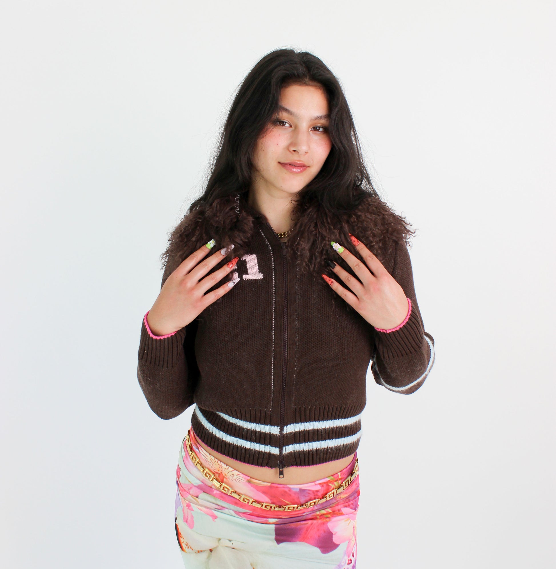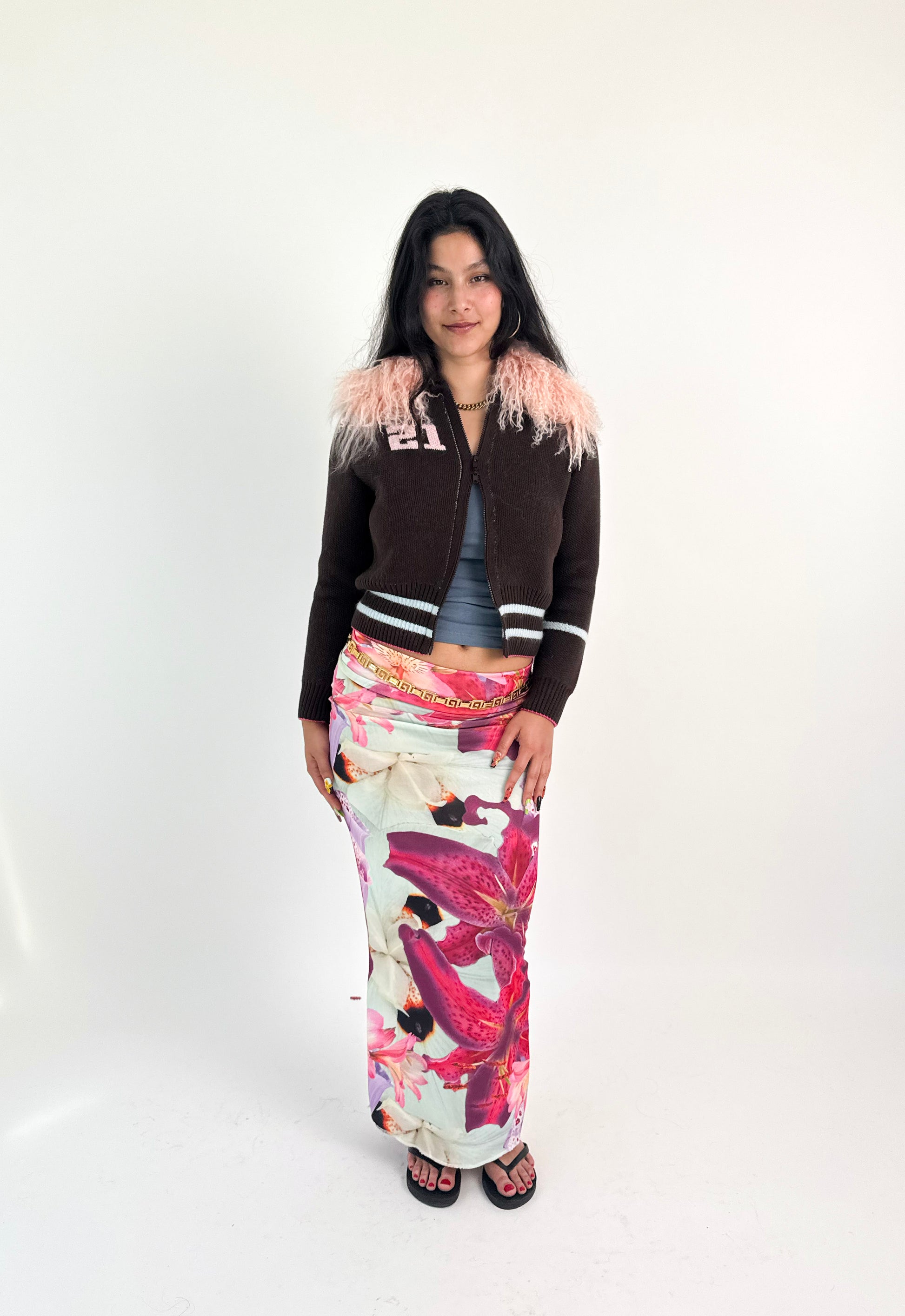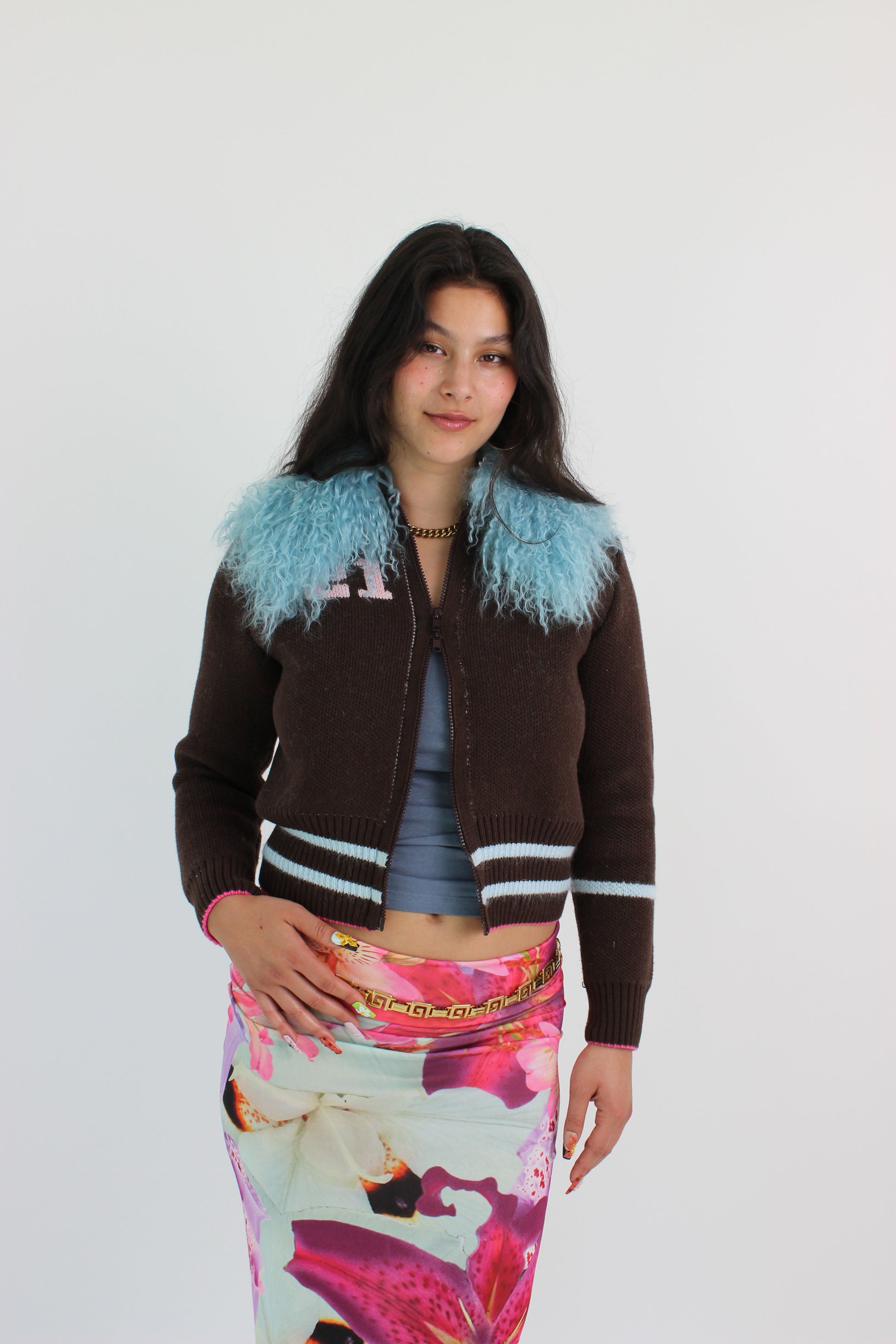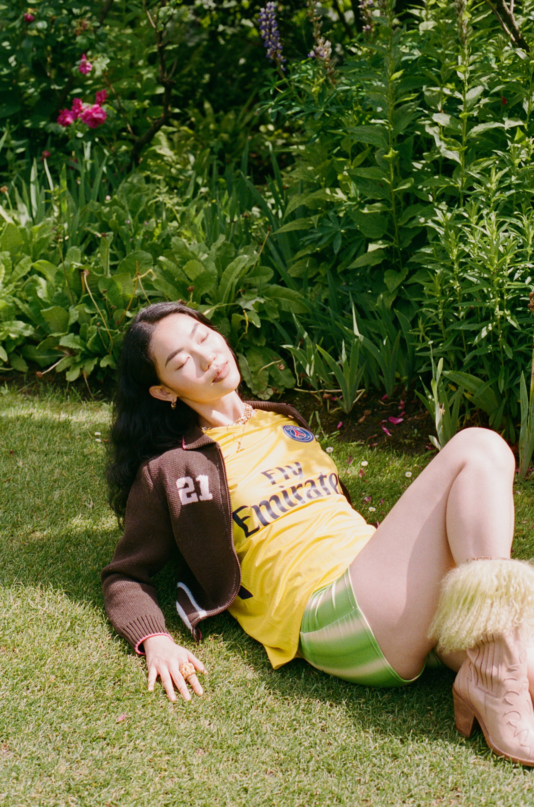 Designed by Maddie, who studied and worked as a knitwear designer before founding Senja, the piece reflects her love of considered details: a double zip front, jacquard graphics in baby pink and light blue sporty stripes. It features a ‘21’ on the chest, a nod to when Senja was founded in 2021. On the back it has ‘Senja’ and a sun motif, a celebration of the brands name and roots.
