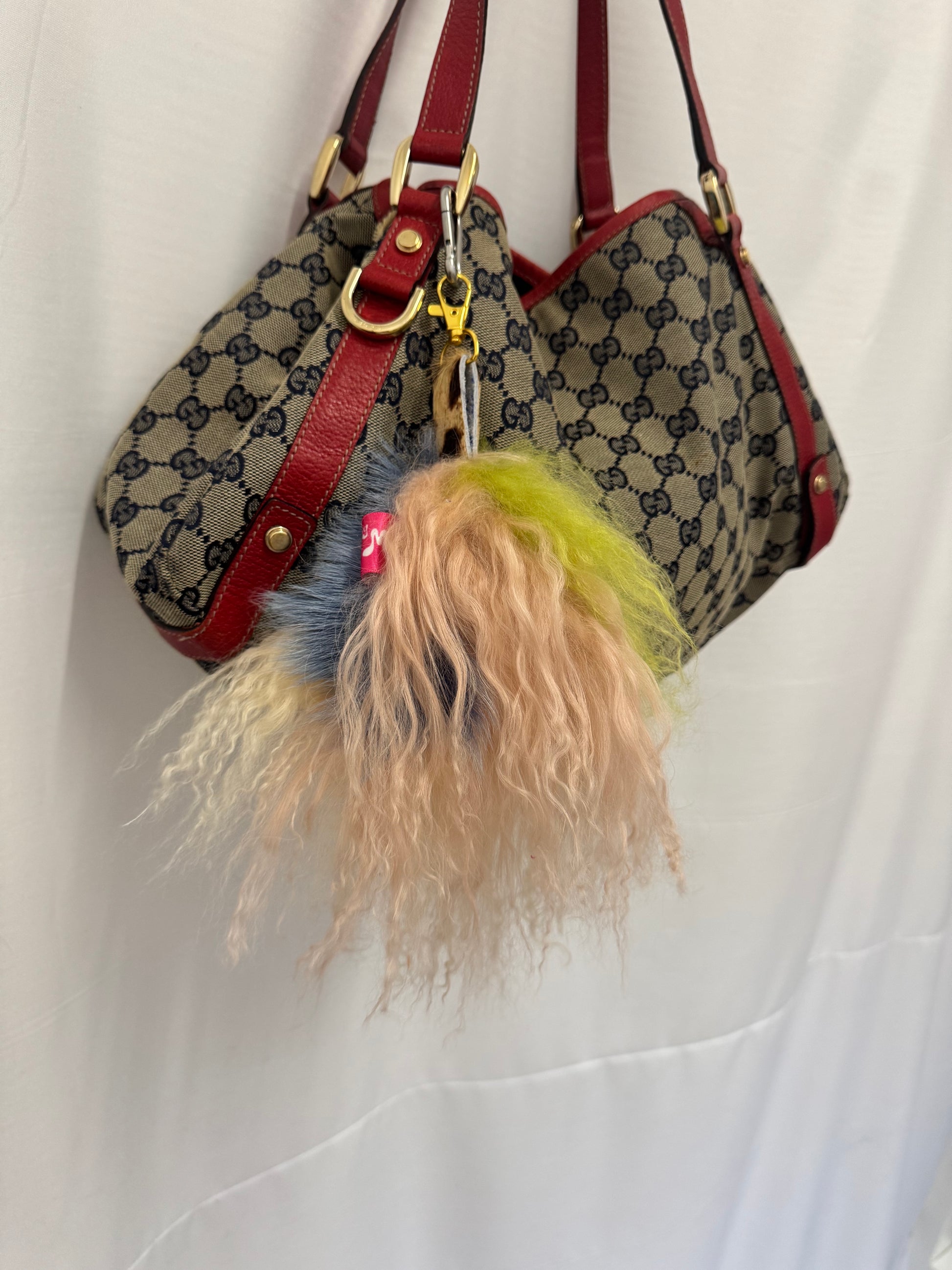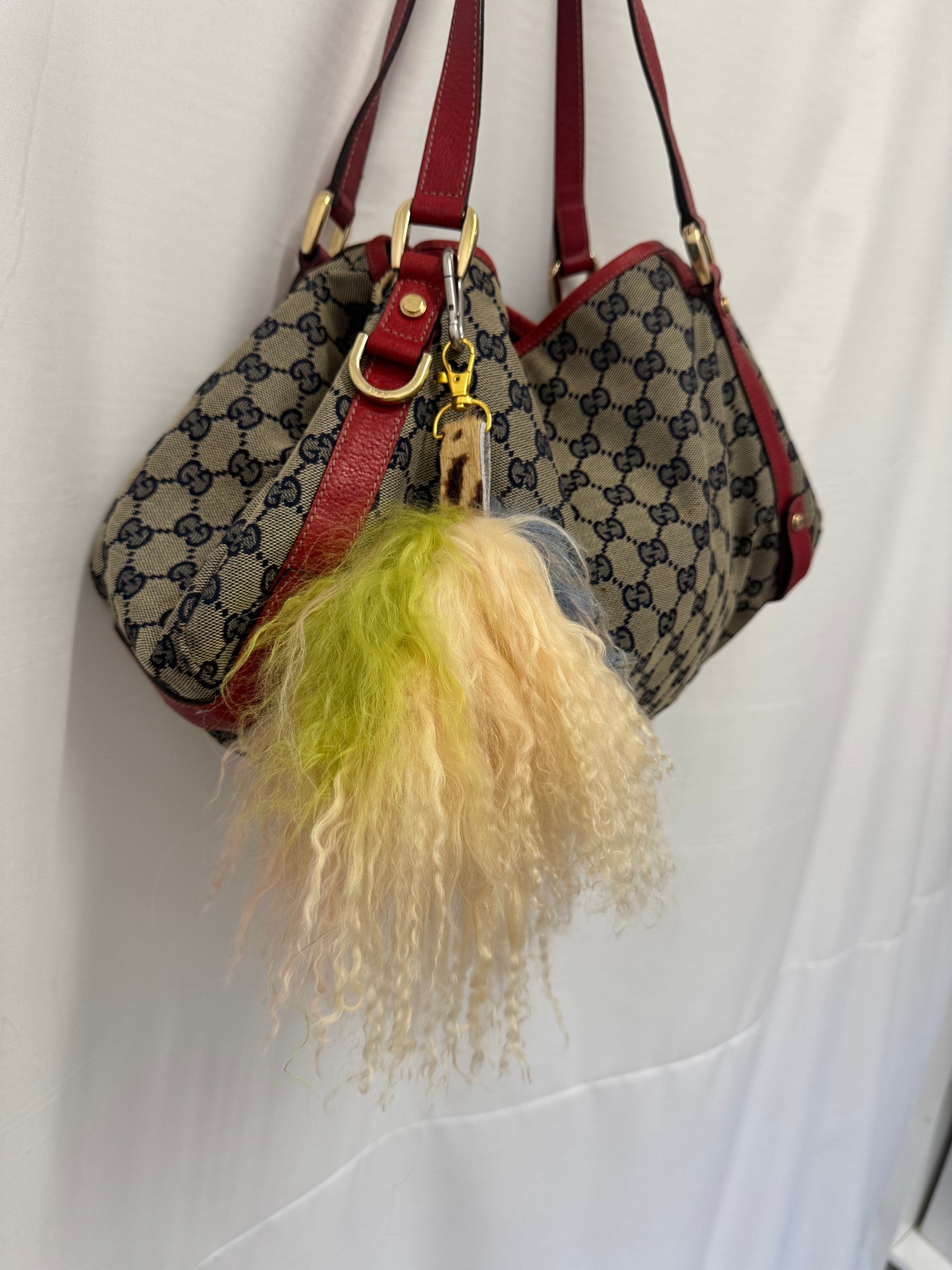 A statement key charm handmade using our Mongolian wool and leather scraps. Designed to jazz up any bag or set of keys, each piece is one-of-a-kind, celebrating our commitment to using as many fabric scraps as possible! Finished with a gold-tone clasp and pink 'Senja by Maddie' label