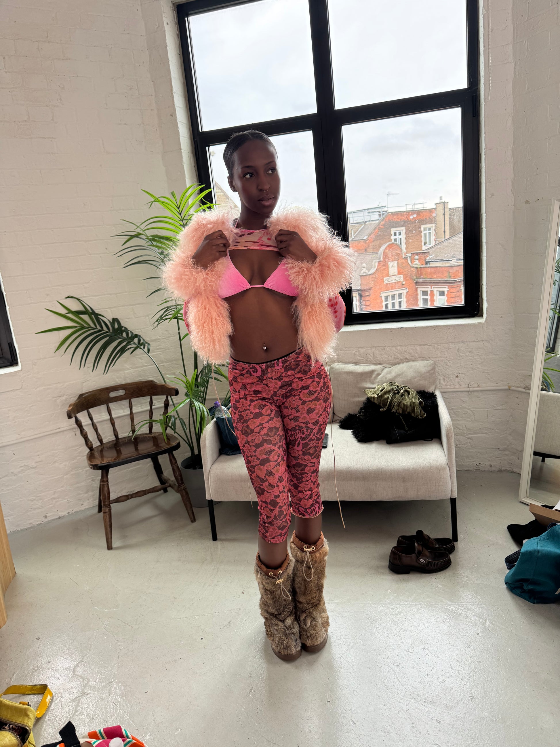 Lace print capris made from stretch jersey. The ‘Senja’ print is designed in-house and is a gorgeous deep burgundy.