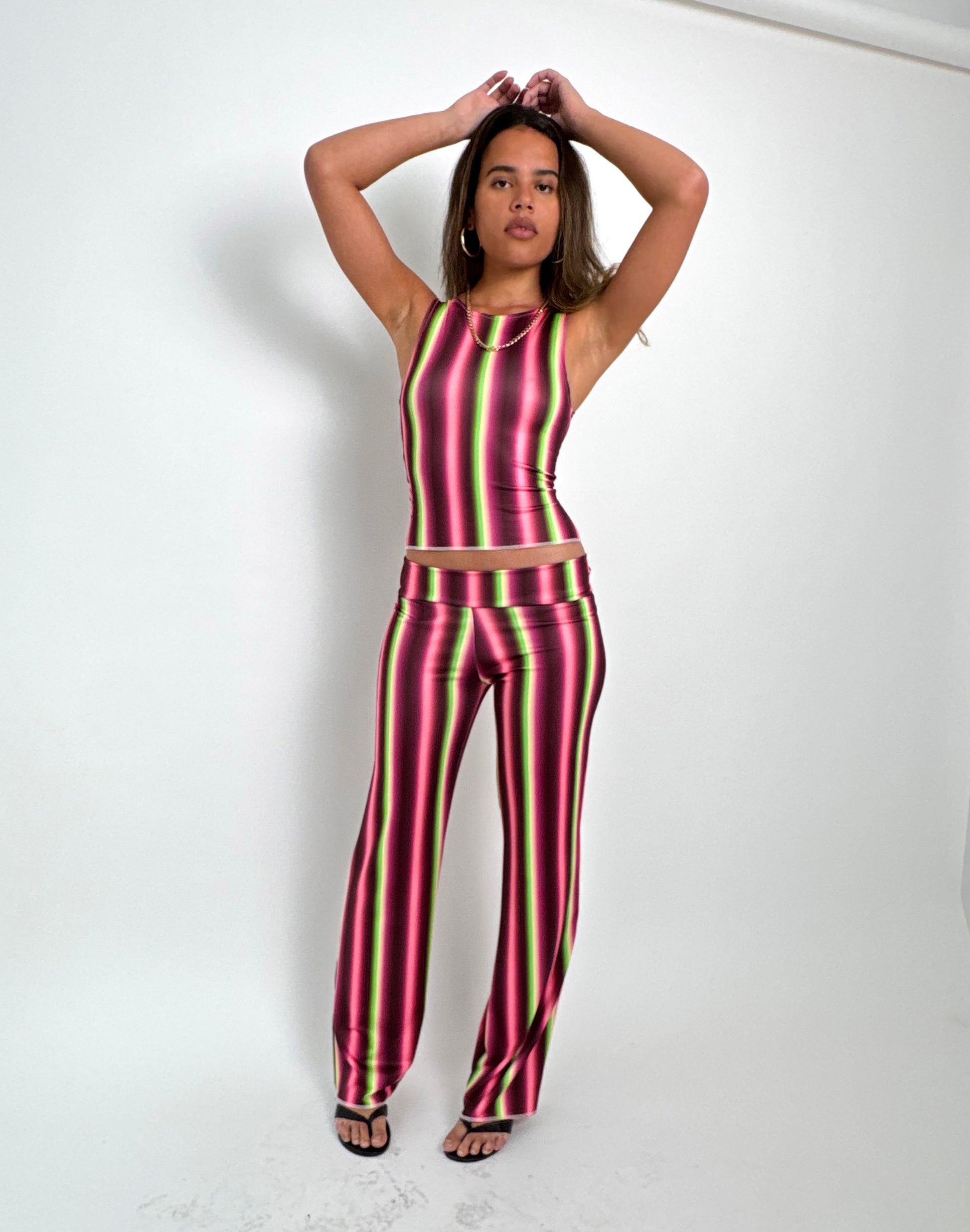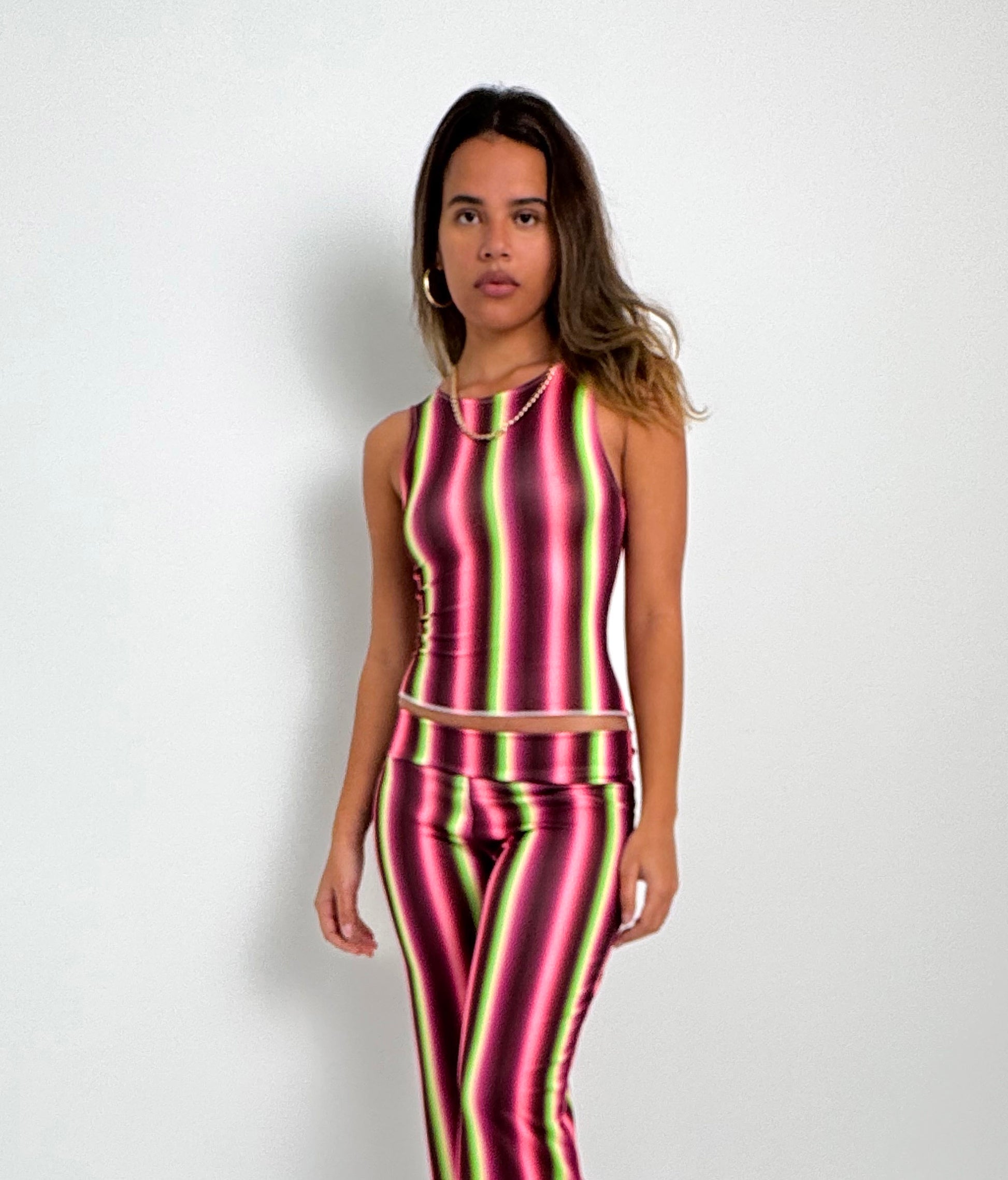 The Raspberry Striped Vest is a sleeveless top in our new stripe print. Cut to a slightly cropped length, it’s the perfect transitional piece – easy to layer or wear on its own. Pair it with the matching stripe trousers for the full co-ord look.