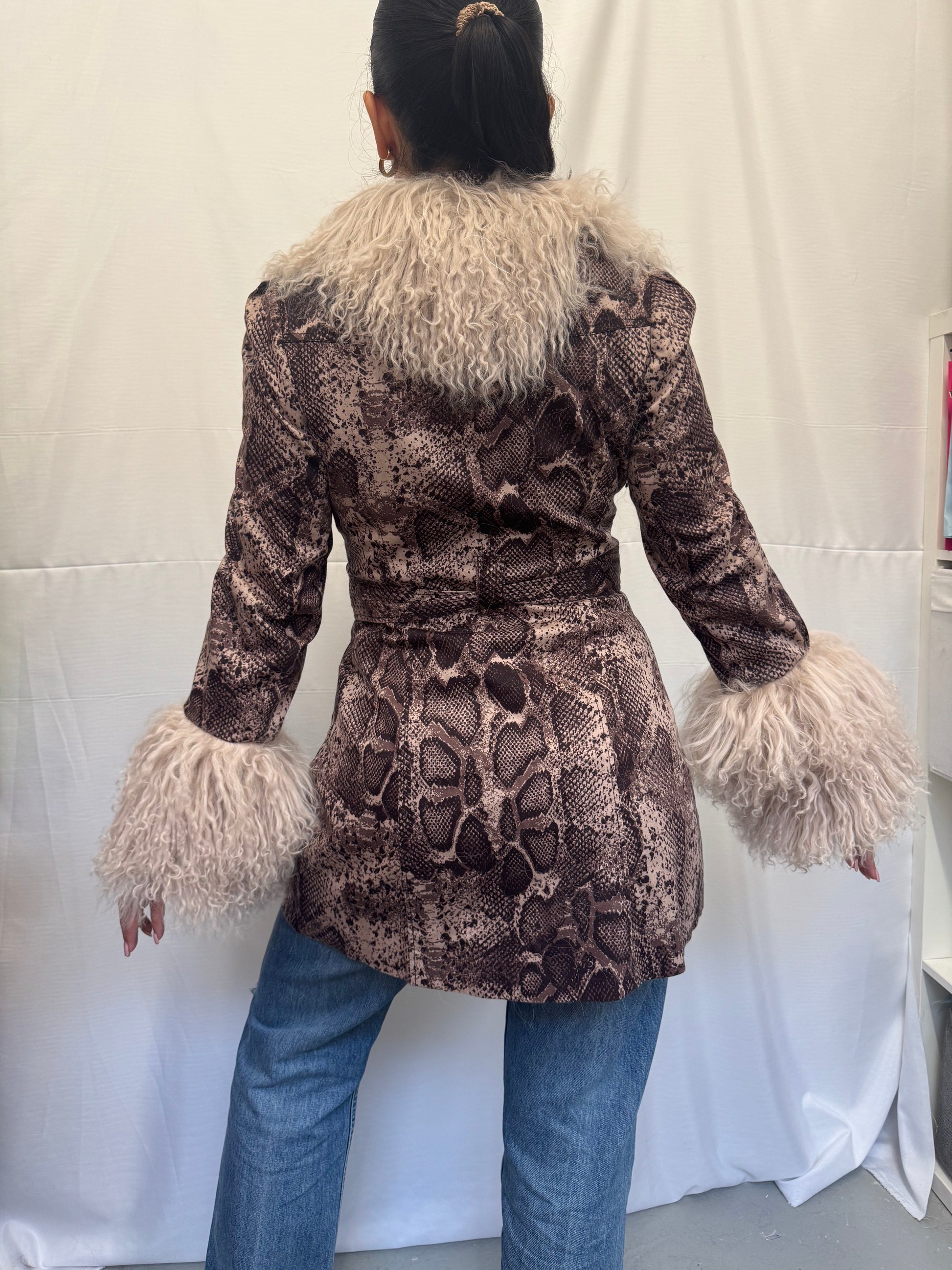 Snake Skin Trench Coat with Oyster Grey Mongolian Trims