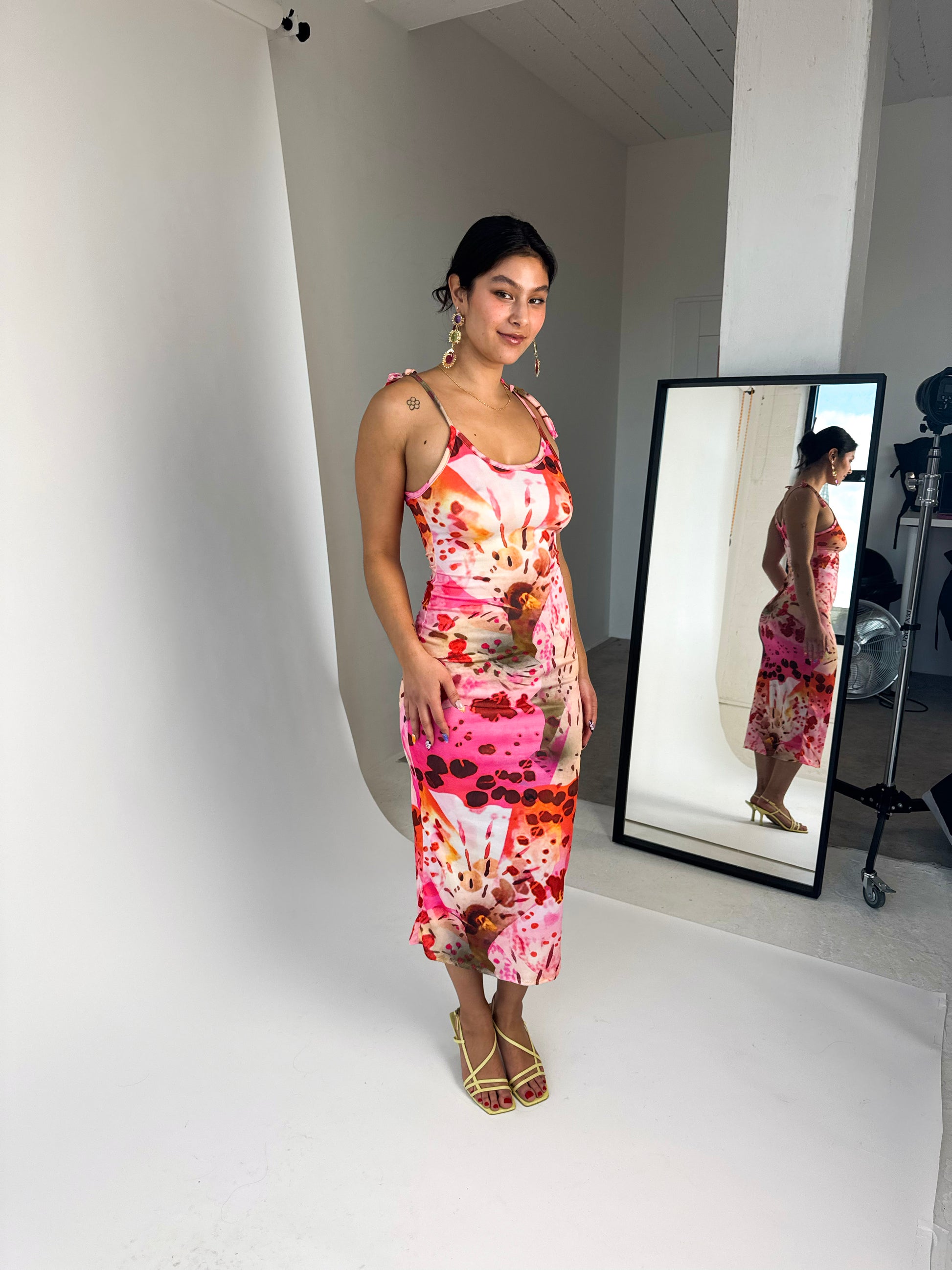 Introducing The Blossom Midi Dress, a gorgeous eye-catching design perfect for the sunny days! Featuring the exclusive Blossom Print, created by Maddie using personal photographs of vibrant flowers. The print placement will be slightly different for each piece, making every one unique. Designed and handmade in London.