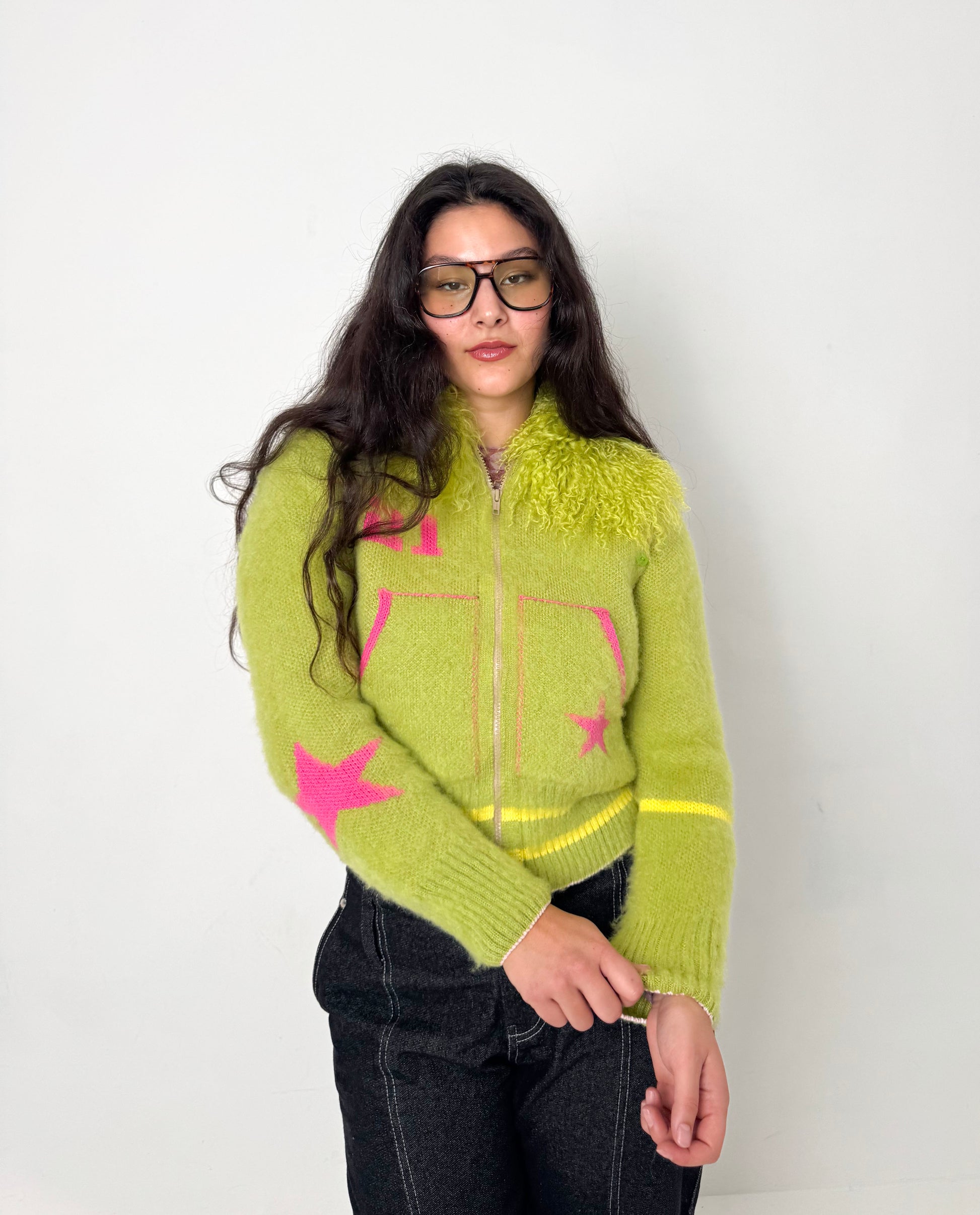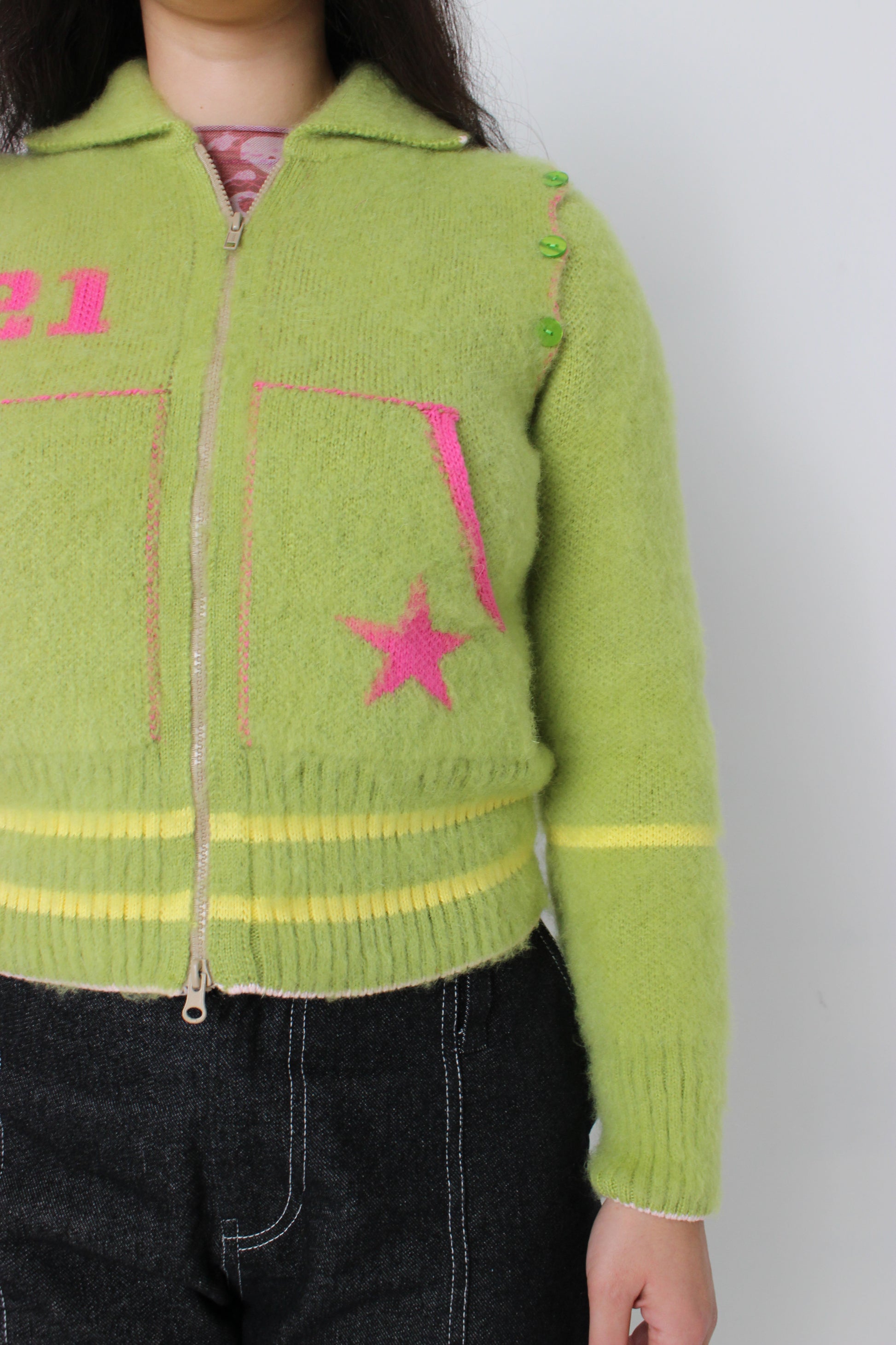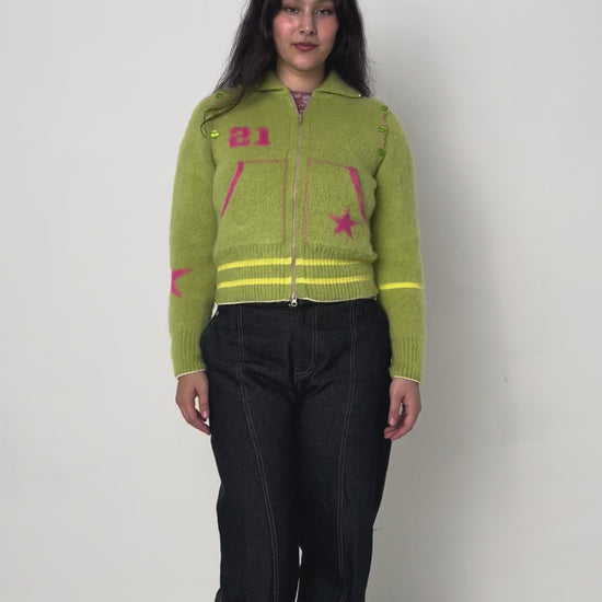 The Lime Green Knit Track Jacket - Detachable Sleeves