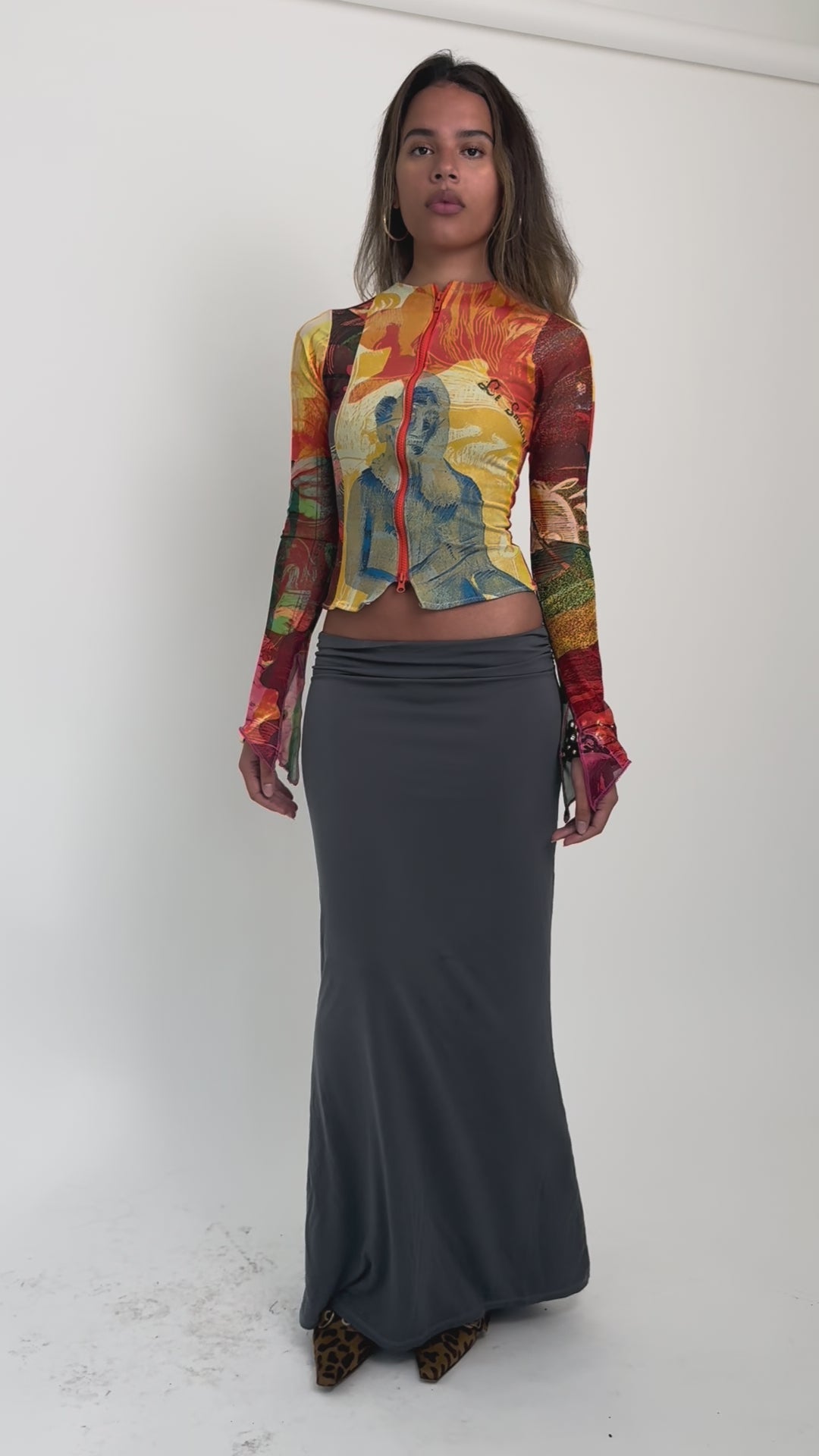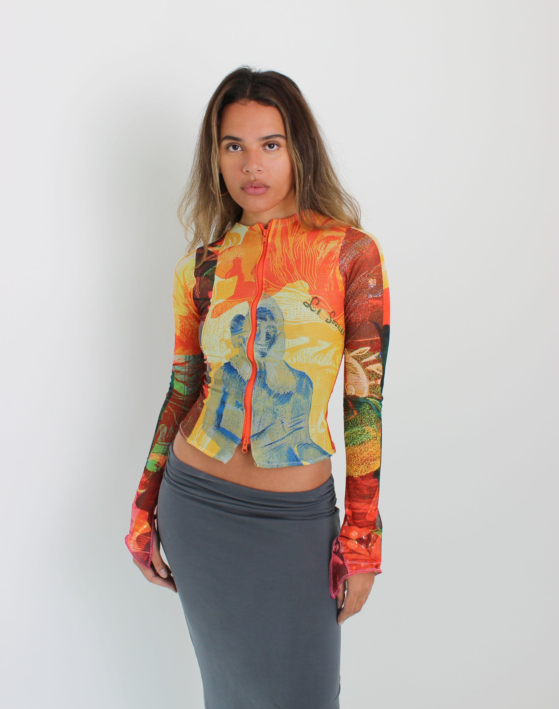 The Soleil Mesh Zip Up is a lightweight long-sleeve layer in our signature Soleil mesh print. Designed with an 18-inch double zip, it can be worn closed as a statement top or styled open over your favourite pieces. Slightly longer than our Lace Mesh Zip Up, it offers a versatile fit while keeping its semi-sheer finish.