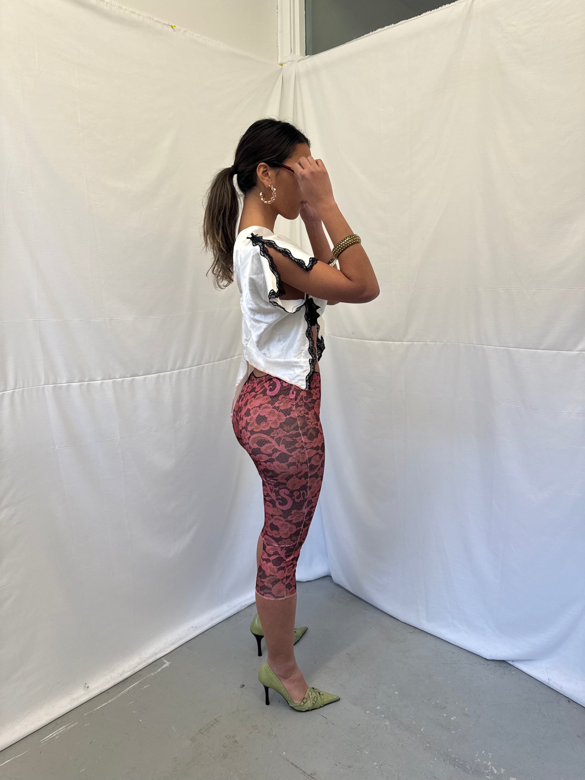 A one-of-one asymmetric top made from upcycled second-hand slips. Handmade in the Senja by Maddie studio using reclaimed materials.