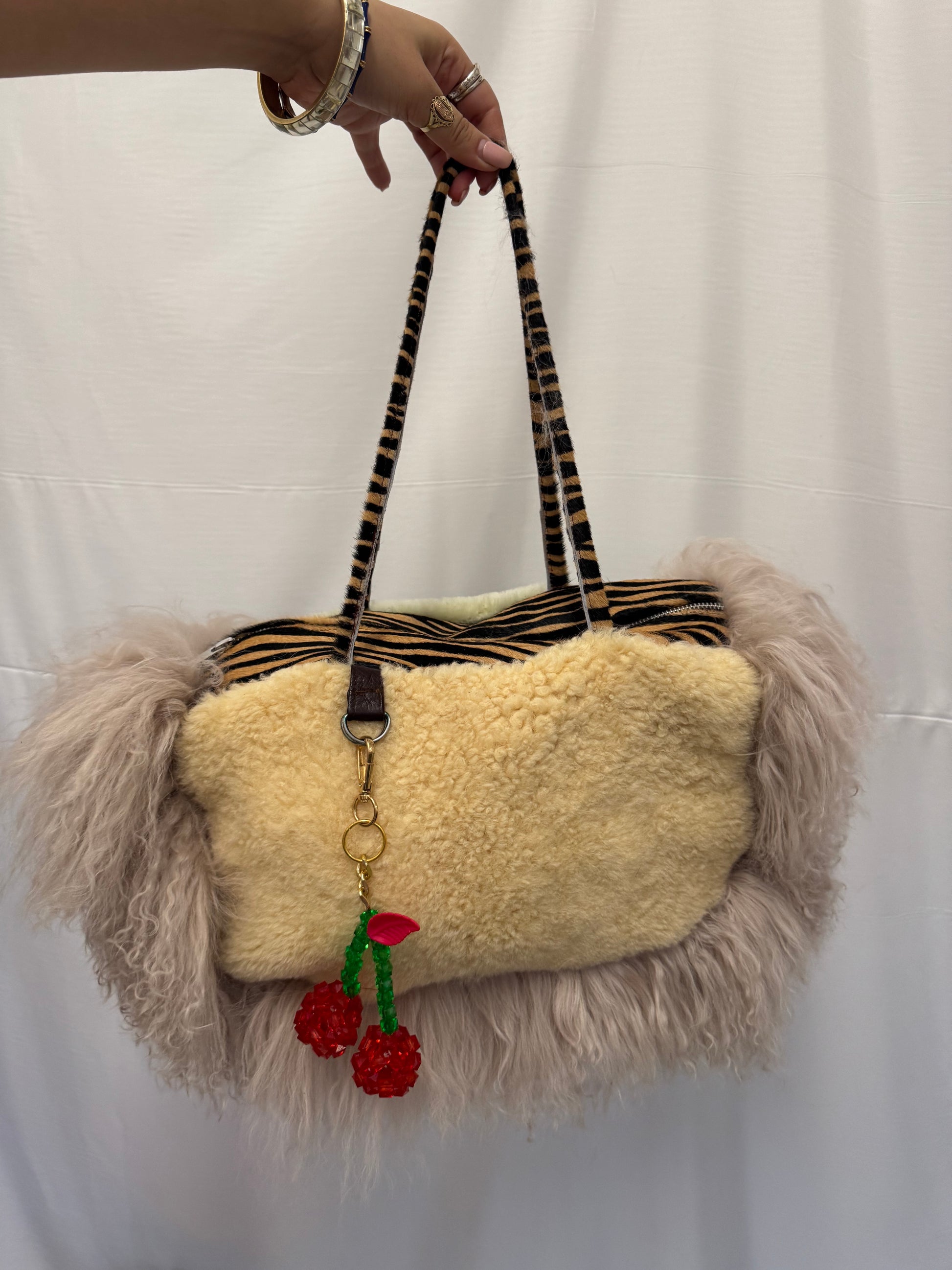 A new accessory we developed for party season! Our take on the classic bowler bag silhouette, reimagined with a signature Senja twist. Crafted from plush brown Mongolian wool and contrasted with statement leopard print leather panels. Designed to be treasured, this is a truly unique 1/1 piece that no one else will own.